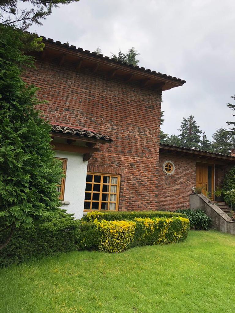 Viva en un bosque!! la mejor zona de la Ciudad de Mexico, Rancho San Francisco, Fraccionamiento con estricta vigilancia 24x24, viva seguro, tranquilo, en una zona muy comunicada, con vías de comunicación cercanas, a unos metros de Santa Fe, casa de 1,200m2 de terreno y 450m2 de construcción, Lista para ser habitada, Garaje para 6 autos. En planta baja amplio vestíbulo de entrada con closet de visitas, ½ baño, estancia, sala con chimenea, comedor con salida a jardín privado, cocina integral, enorme alacena, desayunador, jardín interior, cuarto de servicio con baño completo, lavandería, área de planchado y bodega. Nivel semisótano agradable espacio de bar, mesa de juegos, una recámara con vestidor y baño completo.En primer medio nivel (mezanine), recámara principal con amplio vestidor y baño completo con tina, espacio privado para oficina dentro de la recámara. En planta alta, sala de estar, family room, amplio closet de blancos y una tercer recámara con vestidor y baño completo. EN AREAS COMUNES, estricta vigilancia 24X24, con cámaras de seguridad en todo el fraccionamiento, club hípico, restaurante, iglesia, jardines. Una casa ideal para niños de cualquier edad, no deje pasar esta oportunidad. Contáctenos: 5545979835, 5512894750 y 5539333996.