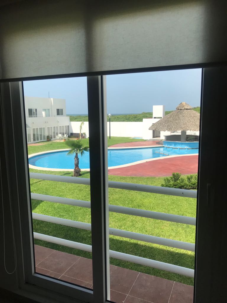 Casa en circuito privado con alberca y a unas cuadras de playa privada, residencial playa dorada, con vigilancia Casa de 2 niveles 3recamaras la principal con baño 2 baños completos y medio baño abajo, sala-comedor, cocina integral equipada con estufa y campana, persianas en toda casa. Area com... Ver más detalles