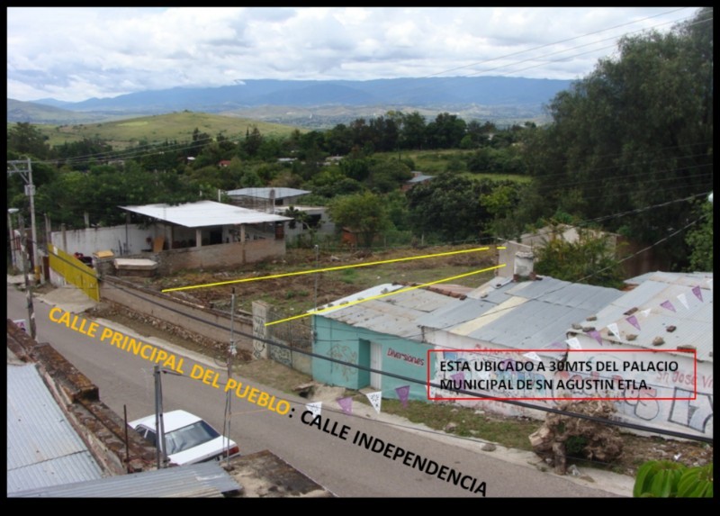 Aproveche la oportunidad!! 372 en pleno centro de San Agustin Etla, a un costado del Palacio Municipal, con 12 metros a la calle principal y 31 m de fondo, con todos los servicios disponibles, excelente ubicacion y vista panoramica increible. *Acepto auto a cuenta.- Asesor Inmobiliario HABITA.